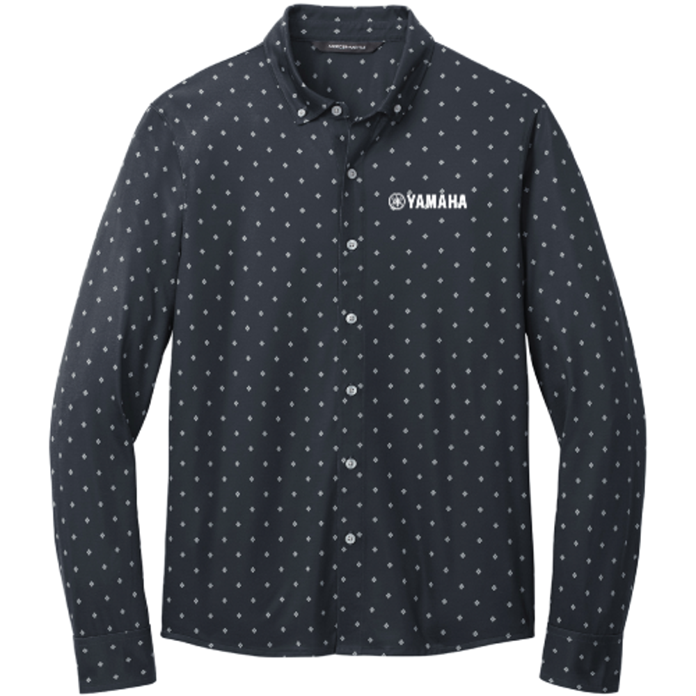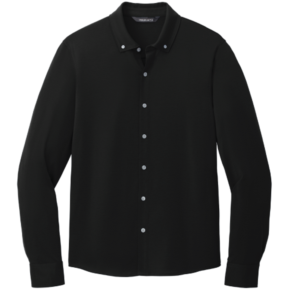 All the traditional components of a classic dress shirt combined with the comfortable drape of soft jersey fabric in a modern, moisture-wicking hybrid silhouette. A versatile choice for the office featuring all the comfort of a favorite tee.